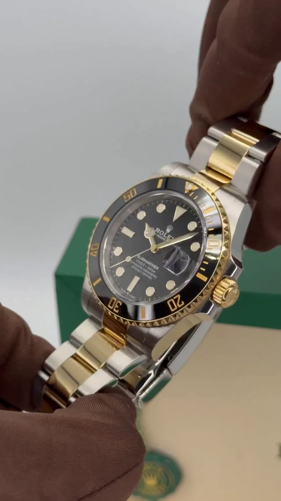 | BRACELET | – Oyster design, two tone flat three-piece links – Made with Solid 904L Grade Stainless Steel with DLC scratch-protection coating and 18k Yellow Gold plating on the middle links – Solid threaded screws, so you can easily remove bracelet links with just a small screwdriver – Folding OysterLock Safety Clasp with Rolex Glidelock extension system, exactly as Original |